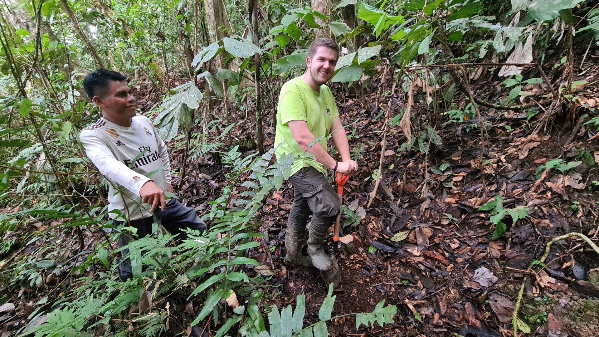 In der Finca werden sie Samen der benötigten Bäume gesammelt und eingepflanzt. Sobald die Samen sprießen, werden die Pflanzen vorgezogen. Wenn die Setzlinge groß genug sind, werden sie an geeigneten Stellen im Regenwald eingepflanzt. Auch unsere 130 Bäume finden so den Weg zu Mutter Natur. Alle gepflanzten Bäume werden anhand eines GPS-Gerätes markiert, sodass wir in Zukunft den Bäumen beim Wachsen zusehen können.